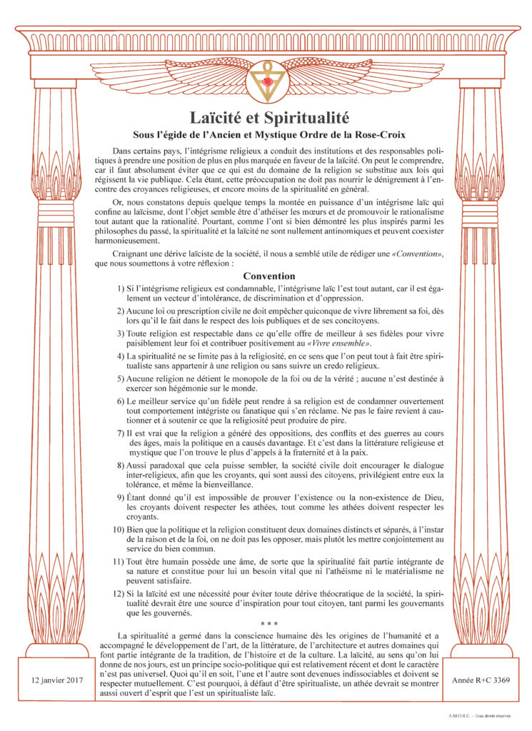 Craignant une dérive laïciste de la société, il nous a semblé utile de rédiger une «Convention»,